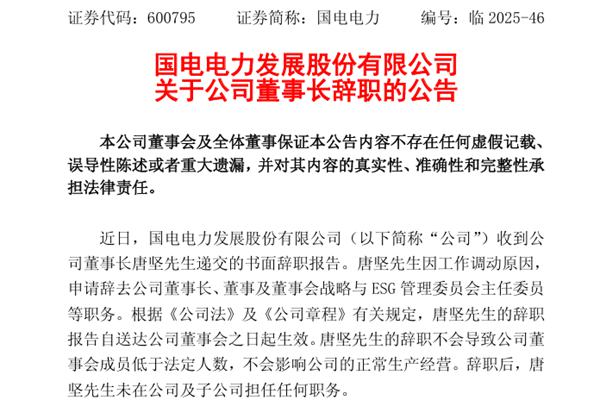 国电电力董事长辞职